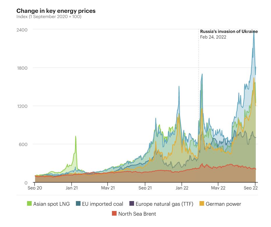 Le sanzioni europee sulle importazioni di carbone e petrolio e le decisioni di Gazprom di tagliare le forniture di gas stanno innescando un profondo rimescolamento dei flussi commerciali in tutto il mondo. Come si legge nel report, gli alti prezzi dei combustibili fossili stanno alimentando le pressioni inflazionistiche; la combinazione di calo dei redditi reali e aumento dei prezzi sta creando un rischio incombente di recessione globale.
