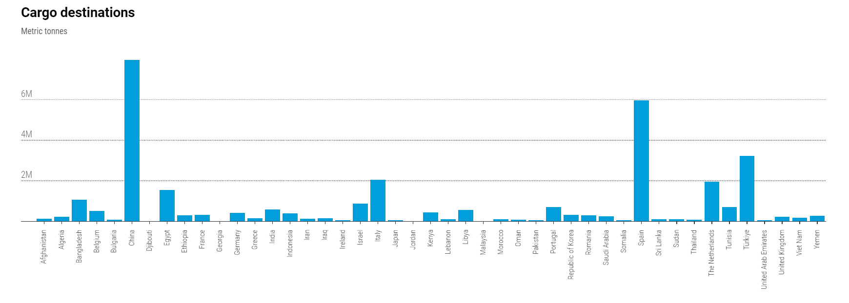 L’Ucraina è uno dei maggiori esportatori mondiali di mais, grano e orzo. Prima della guerra, nel 2021, era il sesto esportatore mondiale di grano, rappresentando il 10% della quota di mercato globale. Dopo l’invasione della Russia nel febbraio 2022, le navi militari russe hanno bloccato i porti ucraini e 20 milioni di tonnellate di grano. Il blocco ha fatto salire alle stelle i prezzi alimentari globali e il rischio è che si ripresenti una situazione simile.