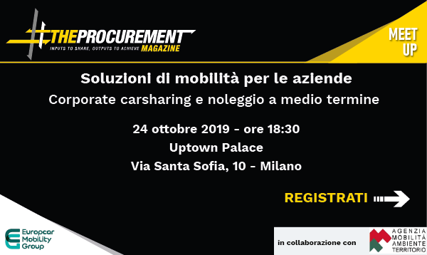 The procurement e Europcar Mobility Group vi invitano a partecipare all’evento “Soluzioni di mobilità per le aziende. Corporate carsharing e noleggio a medio termine” che si terrà il 24 ottobre 2019 presso Uptown Palace Via Santa Sofia, 10 – Milano.